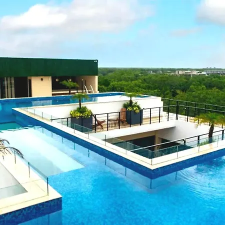 Apartamento Familiar En Aldea Zama的住客可用屋顶游泳池.该公寓离Alumbra Mercado Orgánico大约3.7公里. Apartamento Familiar En Aldea Zama位于Zama区,住客可欣赏水池景观.